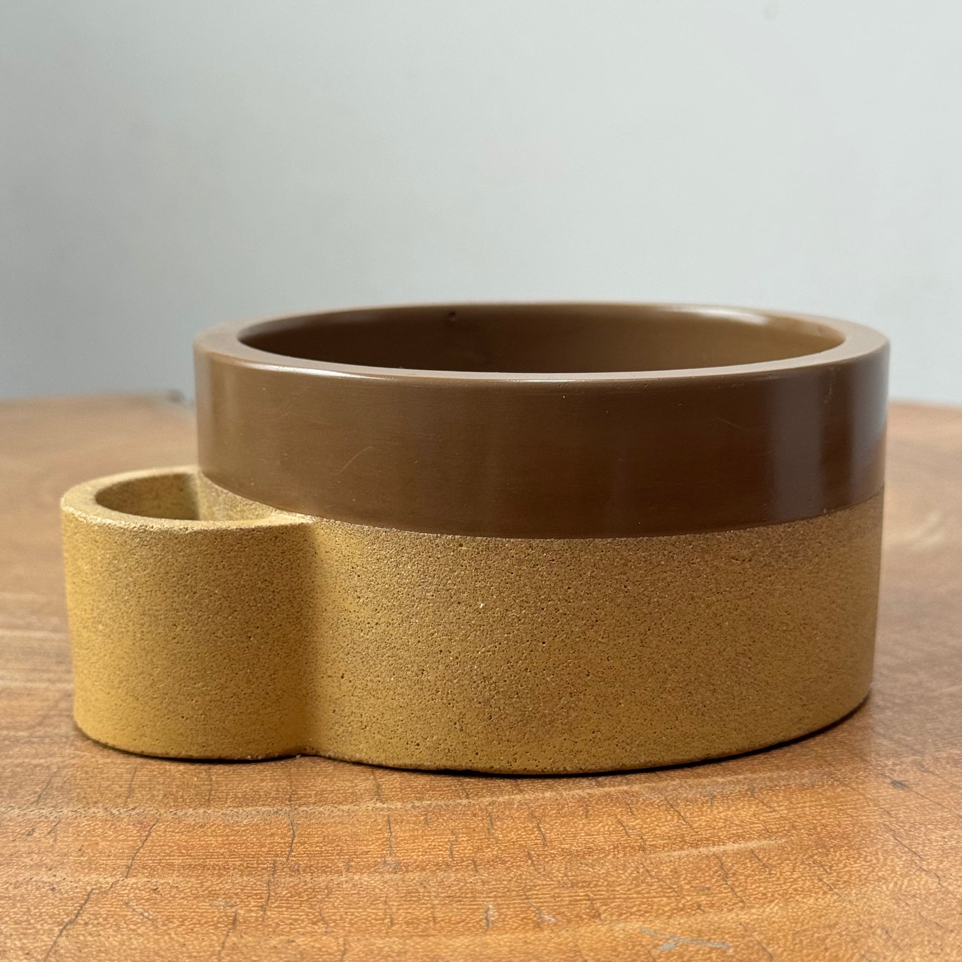 Sela Sample pot in okergeel stone/chocolate brown.