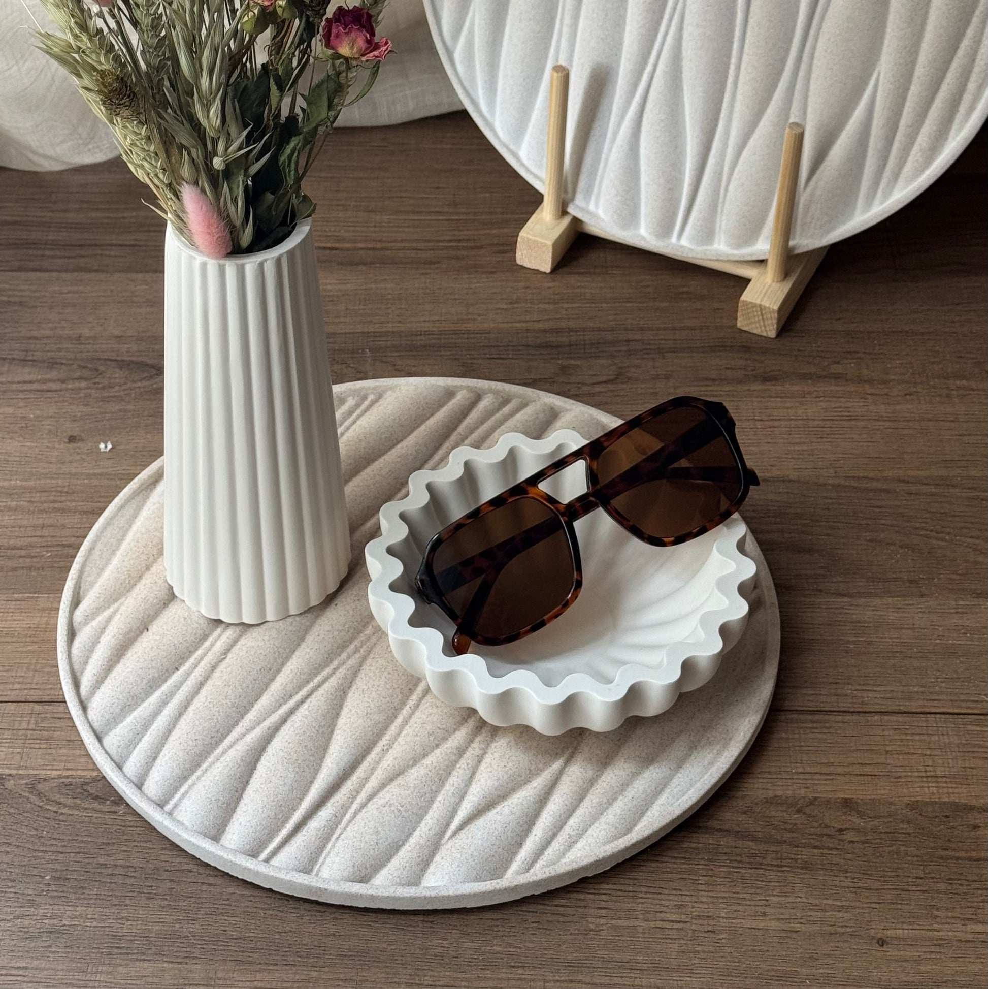 Dit is absoluut één van onze favorieten: schaal Serra. Zo uniek, zo leuk! Het doet ons denken aan het strand - zo'n dag waarop de wind zijn sporen heeft achtergelaten in het zand. We hebben ervoor gekozen om deze alleen in natural stone uit te brengen, zodat Serra volledig tot haar recht komt.